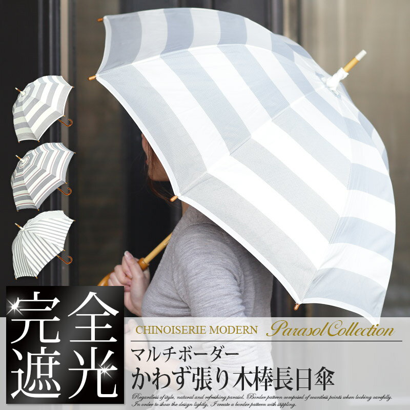 【日傘 ギフト】【送料無料】100%完全遮光・遮熱 「マルチボーダー かわず張り木棒長日傘」日傘 長日傘 UVカット 完全遮光 日傘 遮熱 涼しい ボーダー柄 晴雨兼用 日傘 ギフト 母の日【楽ギフ_包装】